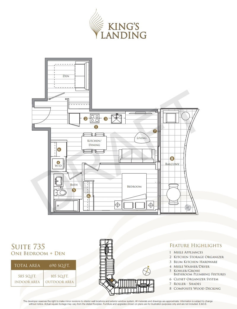 | King’s Landing Condos is a New Condo development by Concord-Adex located at Sheppard E and Leslie (North York). Assignment Sales. One bedroom + Den with 585 sqft Indoor area + 105 sqft outdoor area (North view). 1 Parking and 1 Locker included. |